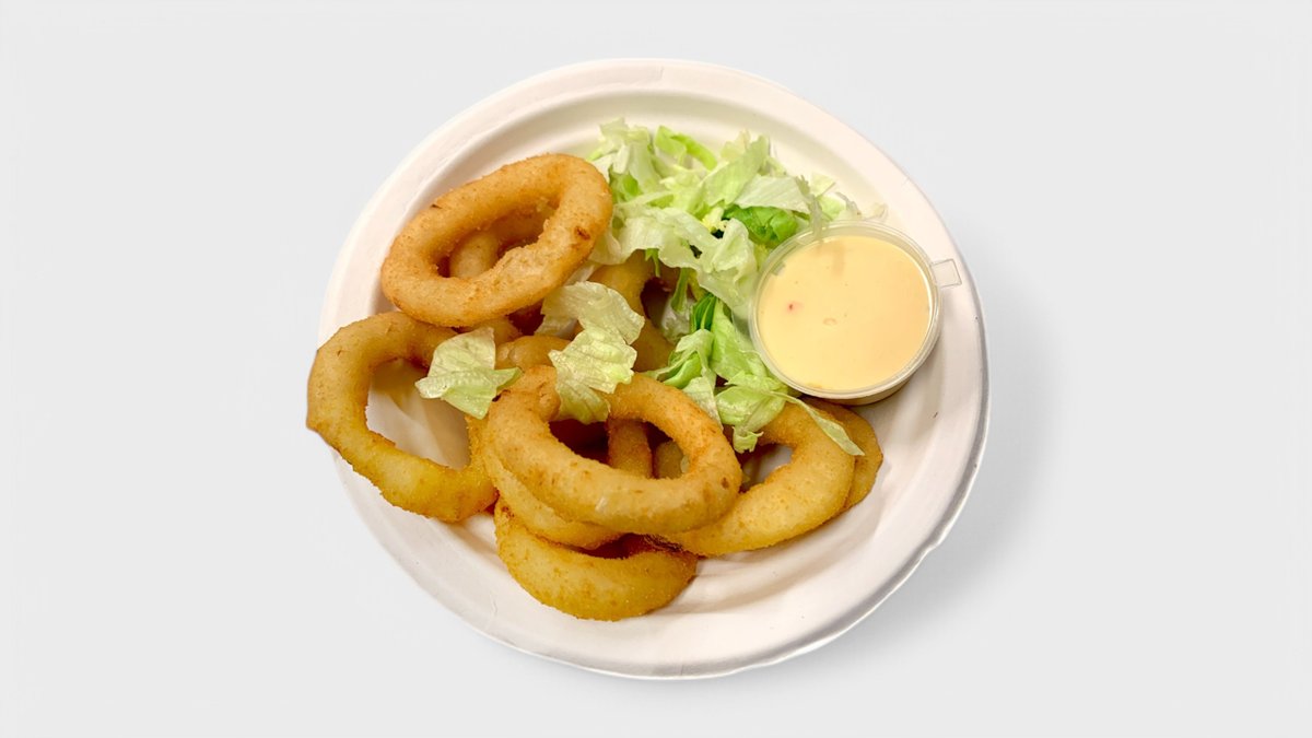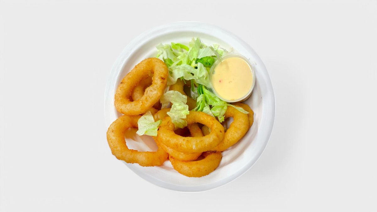 10 kpl mustekala rengas uppopaistettu ja Sweet chili kastike mukaan