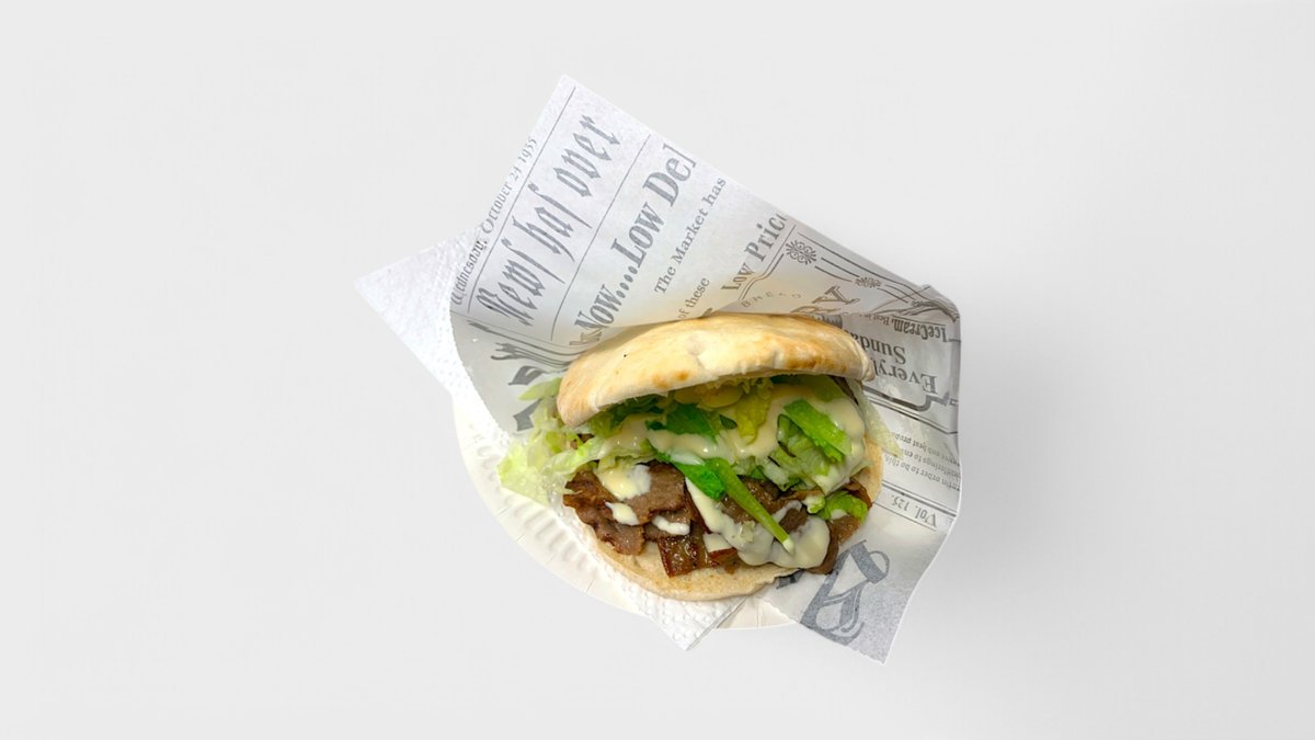 Pitaleipä, kebabliha, salaatti sekä kastike