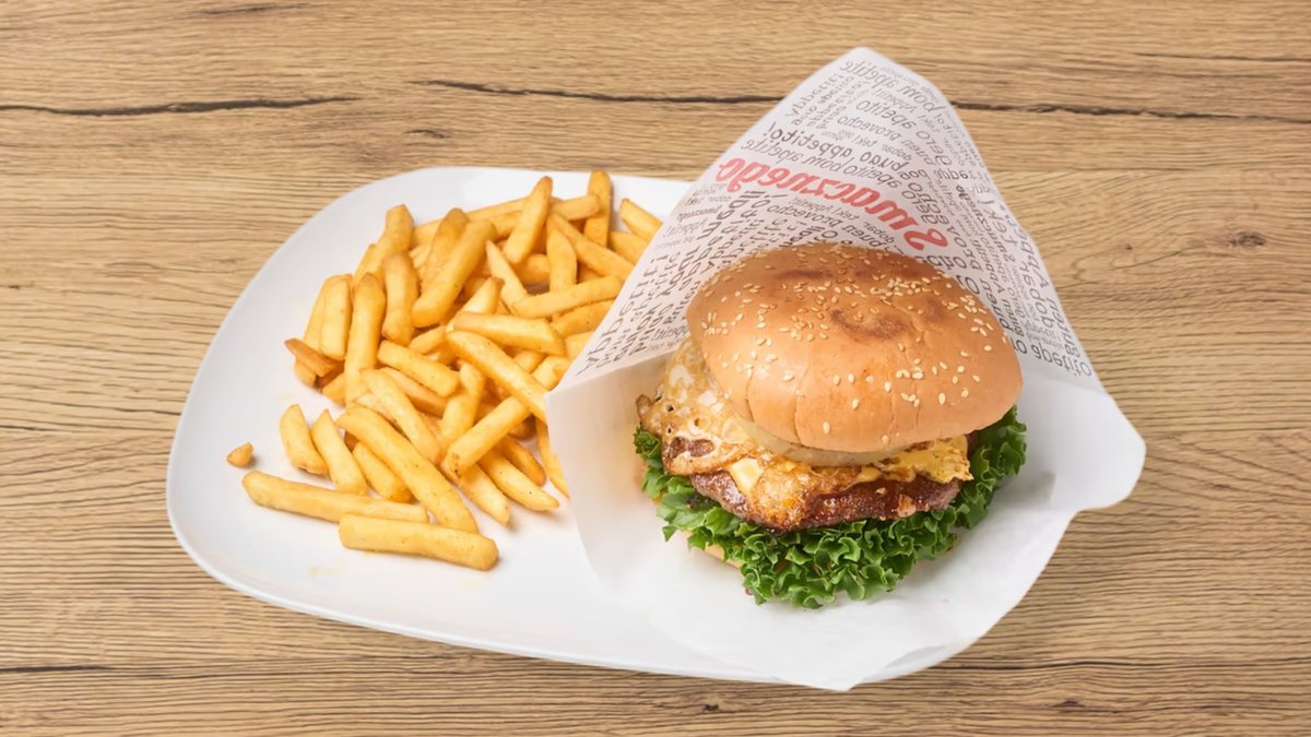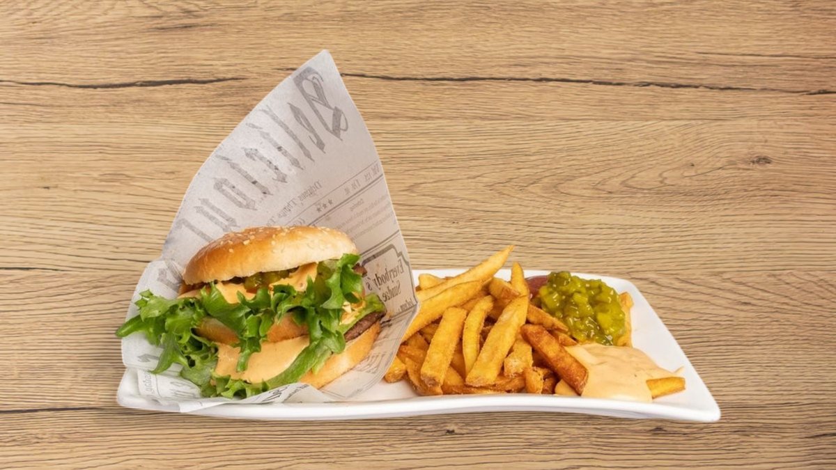 Annoksiin kuuluu ranskalaiset ja 0,33l juoma