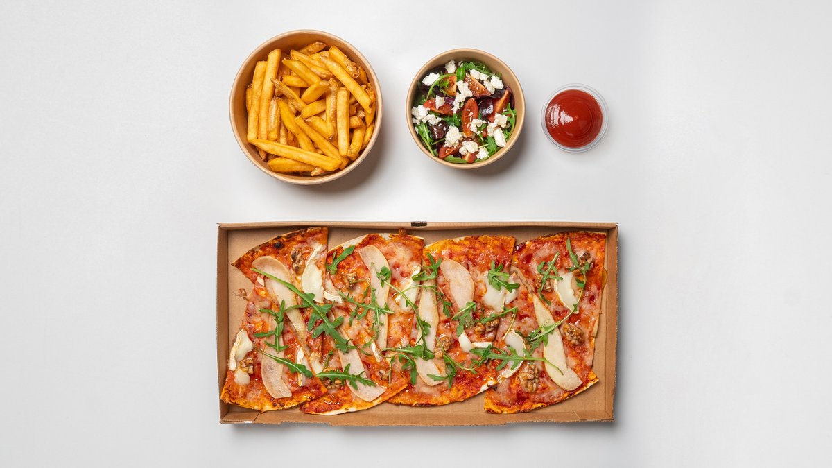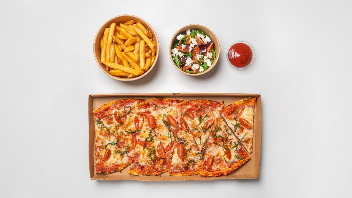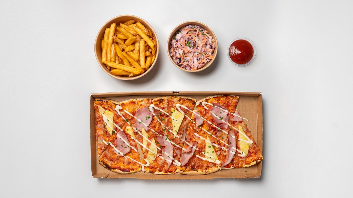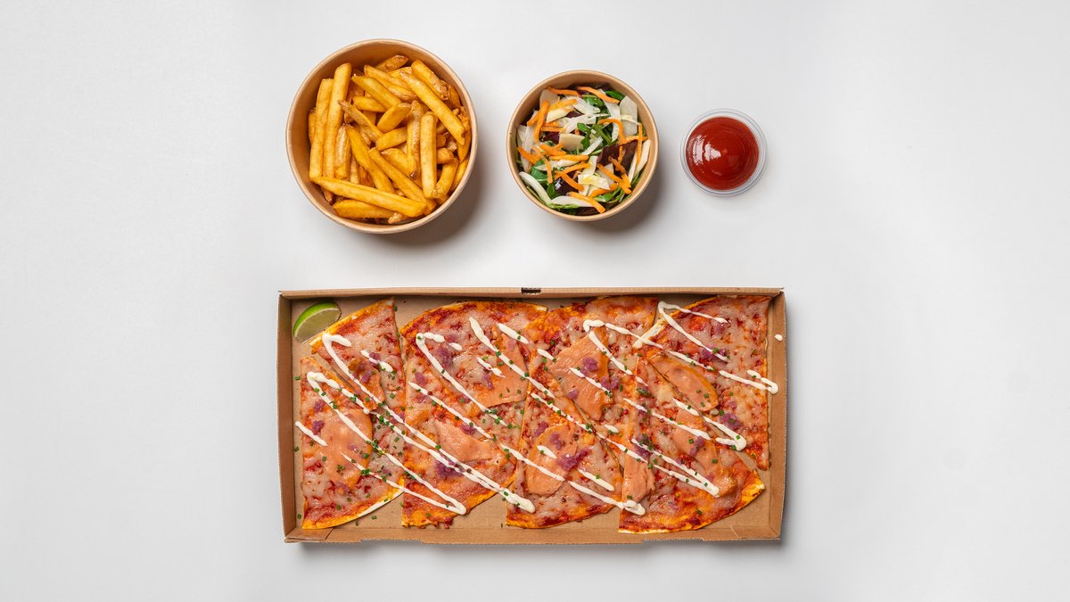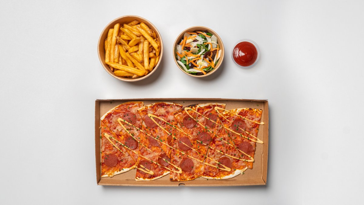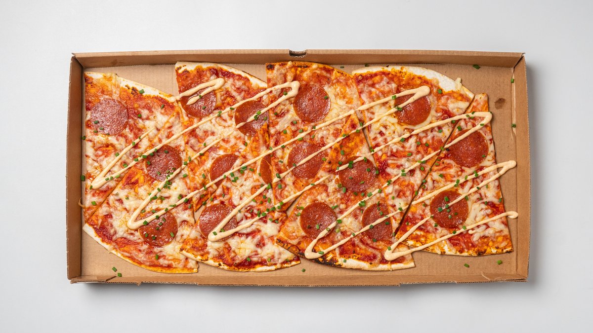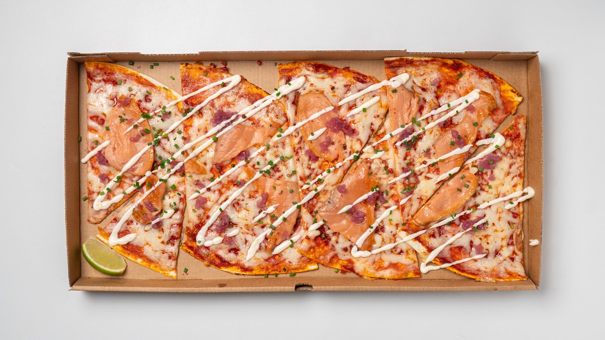 SKINNY PIZZAS ON DURUM TORTILLAS Our skinny pizzas are made on thin durum tortillas. Each pizza features our house-made tomato sauce and lactose-free cheese.