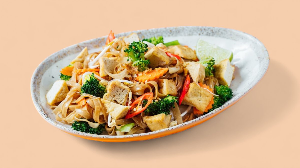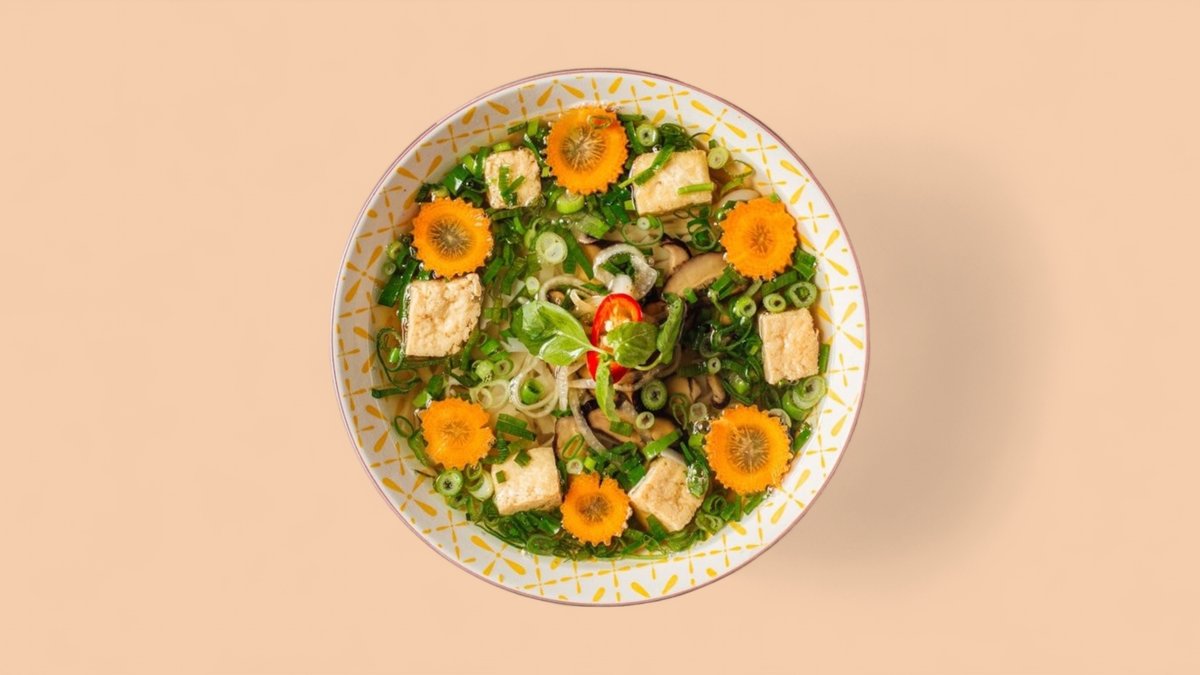 Vietnamese steamed rice dish with organic tofu (vegan)