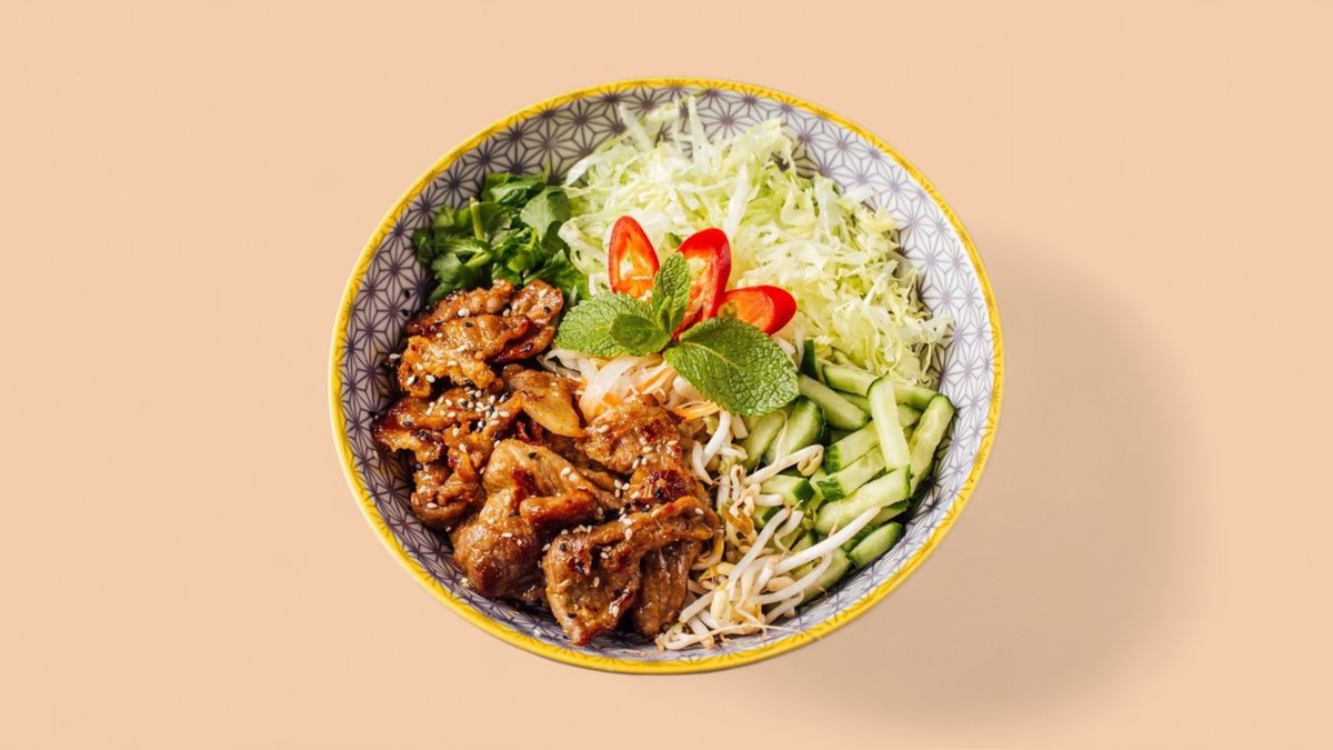 Steamy star anise cinnamon beef broth, served with rice noodles, chilli-marinated onions and fresh herbs. NOTE! medium rare beef has been blanched in boiling water for food safety reasons.
