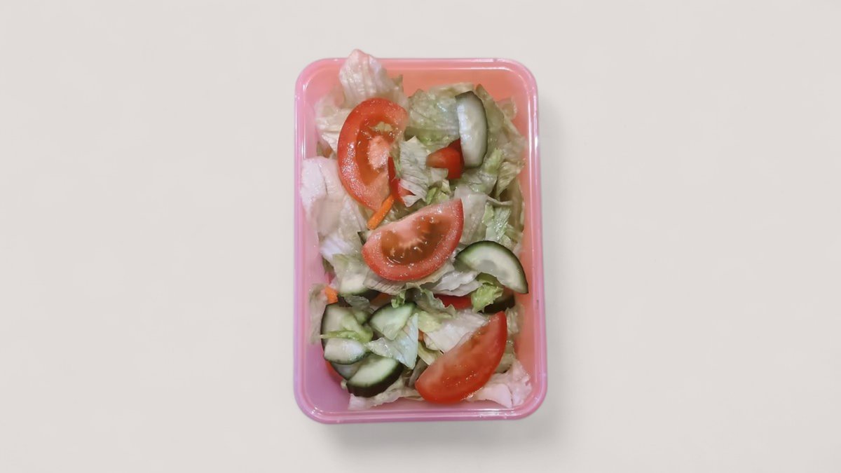 Normally inside (Amerikansalaatti ,tomato peace ,carrot, cucumber and punainen paprika with salad sauce)