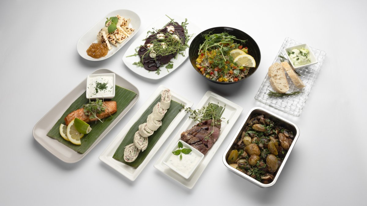 Marinoitu kasvissalaatti (L, G) – Raikas ja aromikas vihannessekoitus. Paahdettua merilohta & lime-tilli smetanaa (L, G) – Mehevää lohta ja raikasta yrttikastiketta. Muhennettua perunaa (L, G) – Täyteläisen pehmeä perunalisuke. Puolukkalimppu & rosmariinifocaccia (L) – Kaksi herkullista leipävaihtoehtoa. Yrtti-tuorejuusto (L, G) – Maukasta levitettä viimeistelemään annoksen.