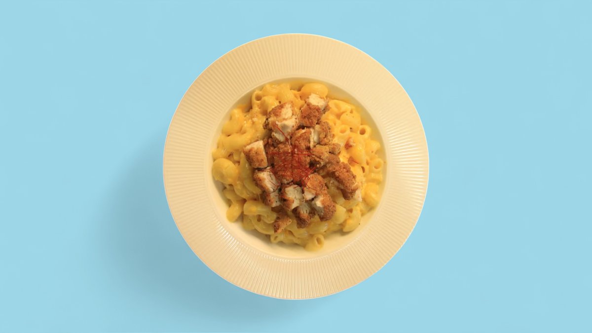 Fried Chicken Mac and Cheese pairs crispy, golden fried chicken with creamy, cheesy macaroni.