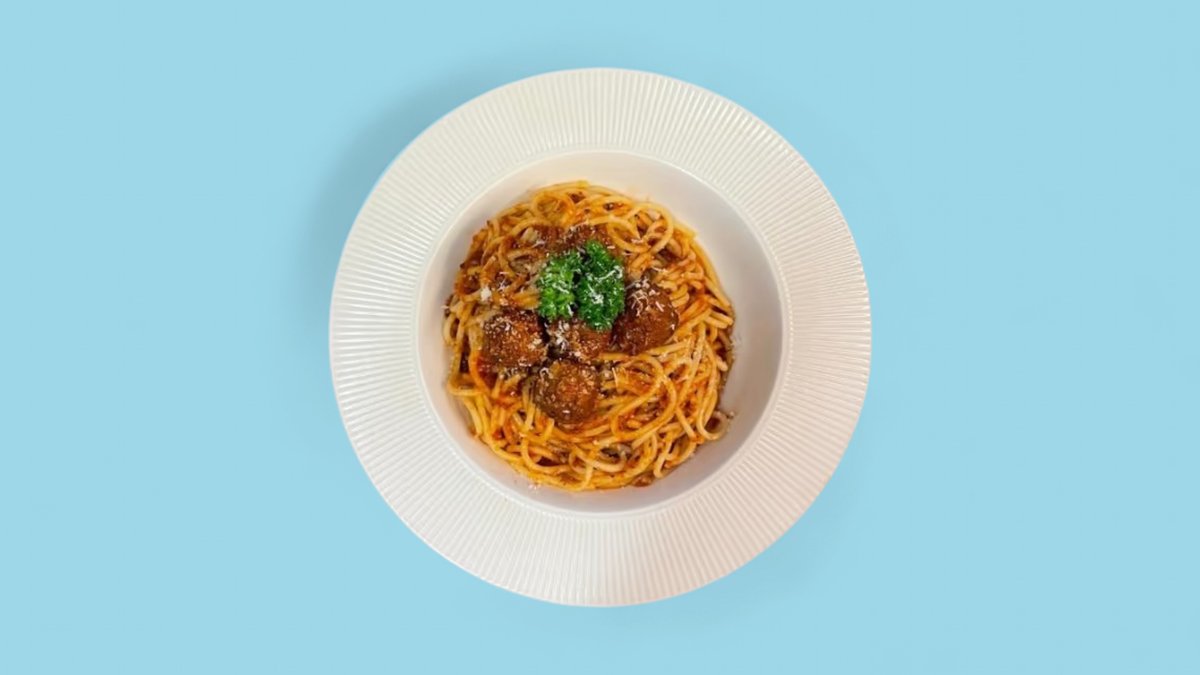 Al dente pasta served with juicy, seasoned beef meatballs simmered in a fragrant tomato-herb sauce—classic, comforting, and packed with robust Italian flavor.