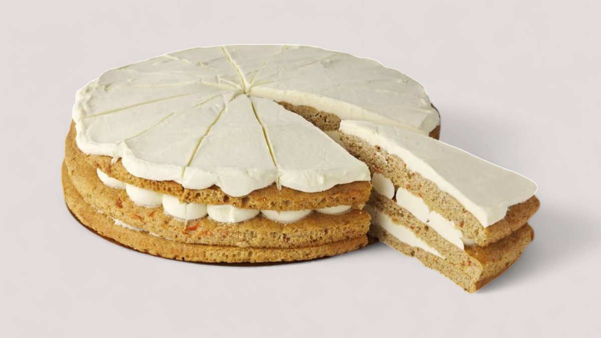 Mehevä porkkanakakku useassa kerroksessa, eli enemmän myös kuorrutetta. Tästä ei porkkanakakku parane.. Kakku on leikattu valmiiksi 14 palaan.