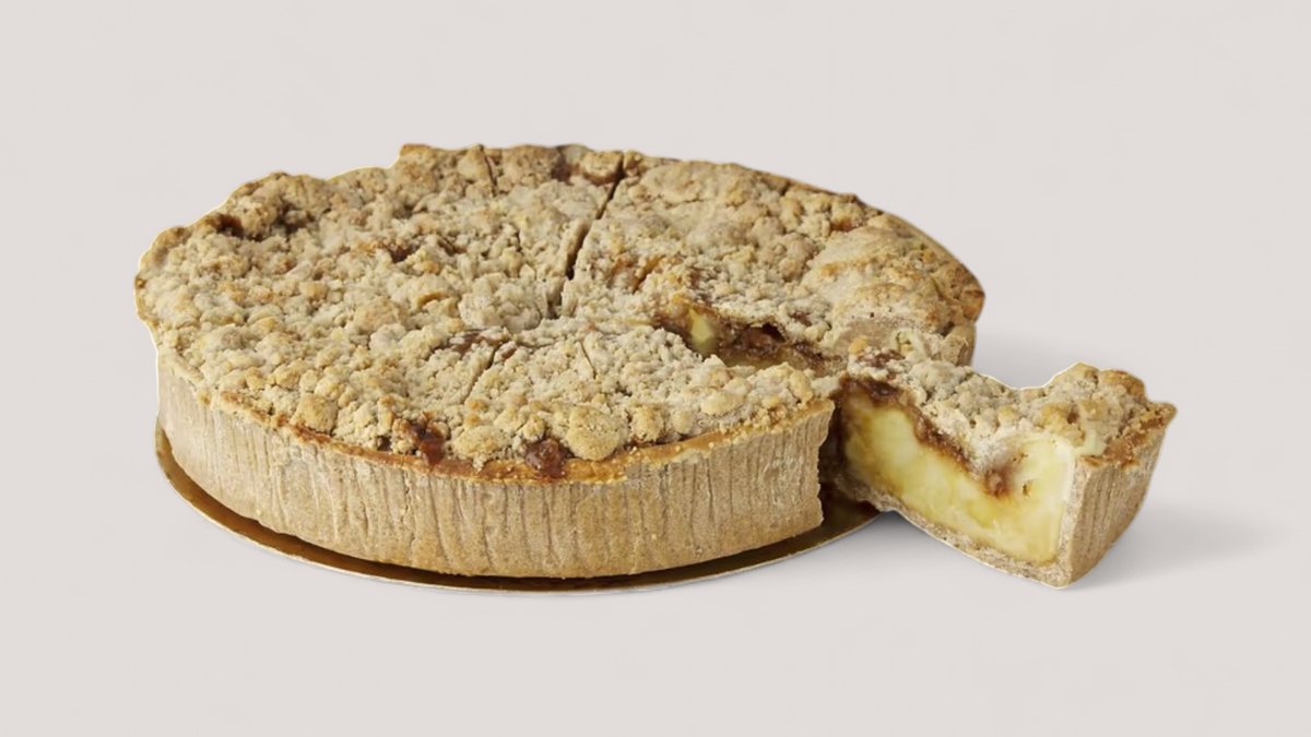 Murotaikinapohjan päälle omenoita isoina paloina, sopivasti sokeria ja ihanaa kinuskia. Herkutteluhetki on taattu.