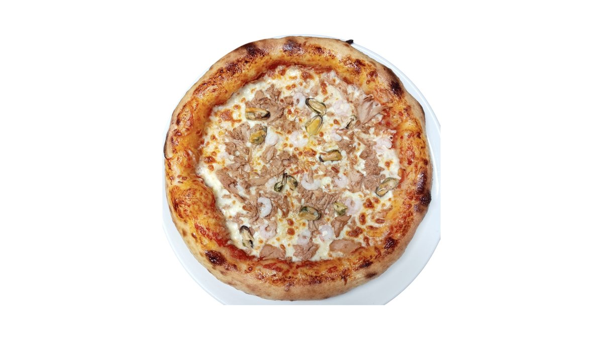 Tomaattikastike, kinkku, katkarapu, salami, punasipuli