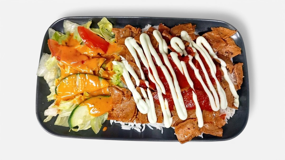 Tomaattikastike, kebabliha, punasipuli, kirsikkatomatti, smetana, jalopeno, feta