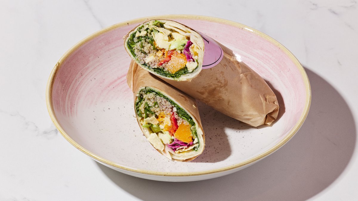 Avokado + Tofu + Chili + Lime Roomansalaattia, umami kvinoaa, seesamipaahdettua tofua, chilipaahdettua bataattia, paprikaa, punakaalia, ruohosipulia, Chilirachaa, vehnätortilla ja täyteläistä limedressingiä. kcal 905 | prot 26 | carb 78 | fat 53