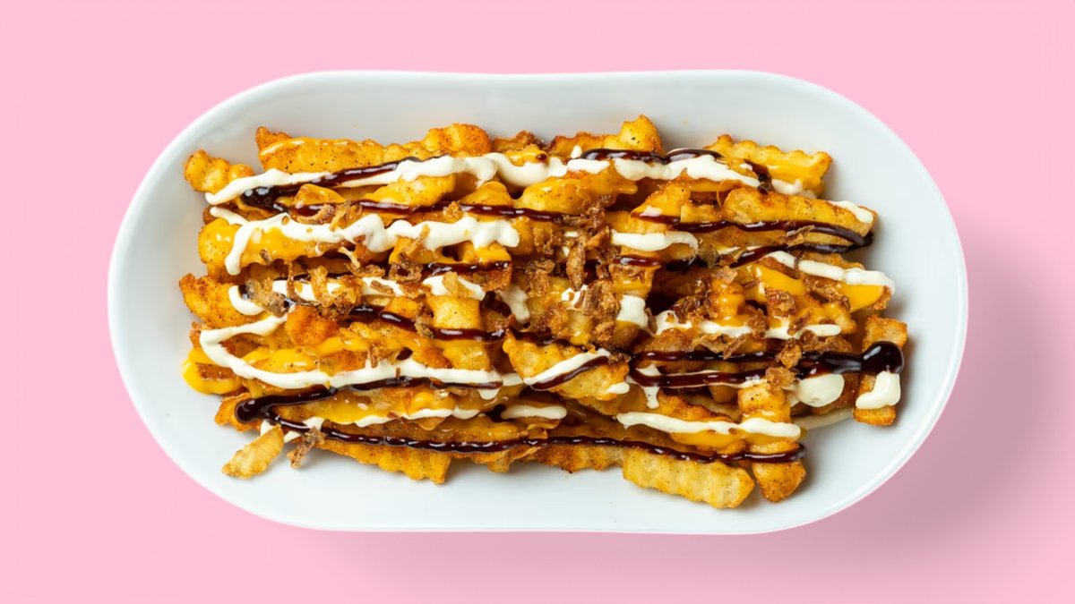 Crispy French fries (400 g) topped with crispy bacon bits and cheddar sauce.