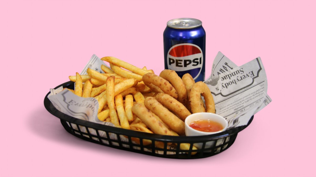 Onion Rings + Dippi + Fries + Juoma(0,33L)