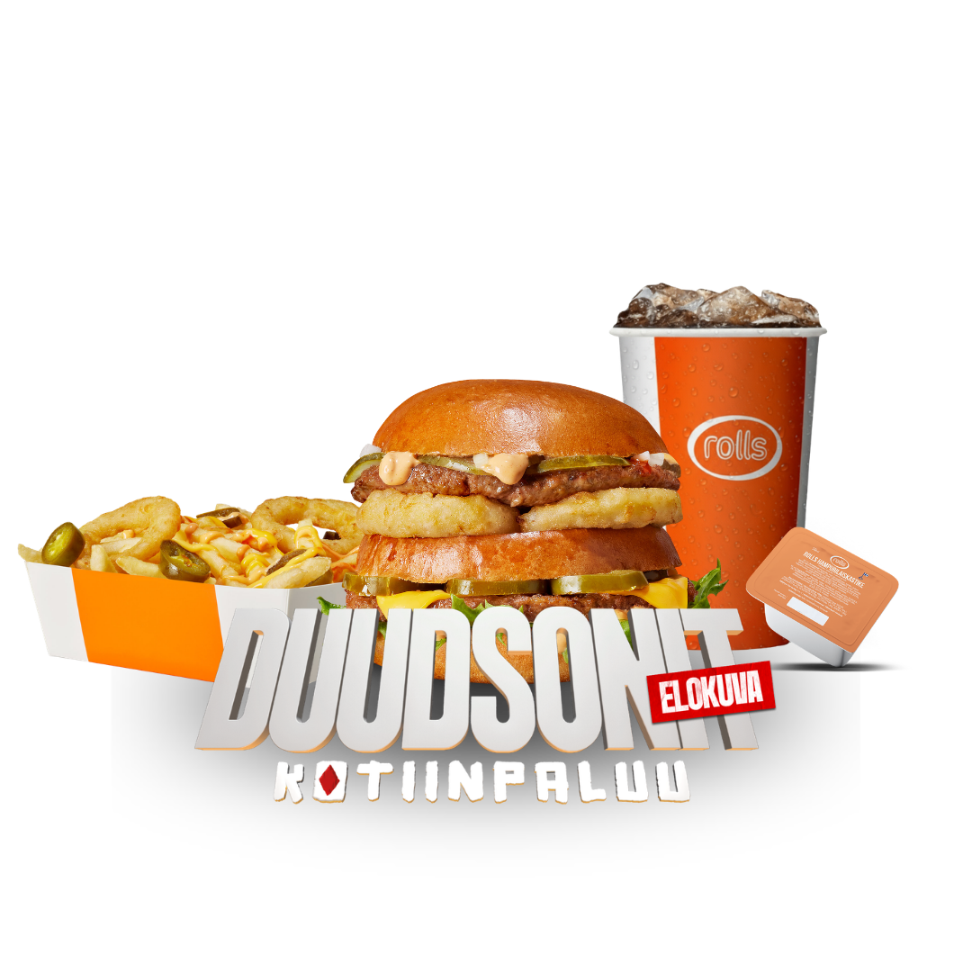 Astetta tulisempi Duudsonit Kotiinpaluu -burgeri, jossa ei säästellä maussa eikä asenteessa. Rollsin mehevien sämpylöiden ja maukkaiden pihvien väliin on lisätty rakennetta rapeilla sipulirenkailla, lämpöä jalapenoilla ja maut sitoo yhteen Rollsin chilimajoneesi. Spicy-fiiliksen viimeistelee legendaarinen Texas Pete Hot Sauce, joka antaa kokonaisuudelle rohkean loppusilauksen ja tekee tästä kampanjatuotteesta todellisen kotiinpaluun arvoisen.