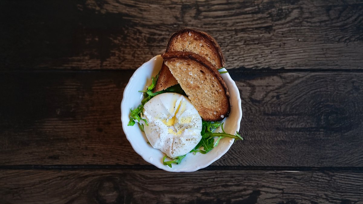 Milanon salamia, valkosipulia, parmesania, tryffeliöljyä ja luomukananmuna. Salami Milano, garlic, parmesan cheese, truffle oil and poached egg.