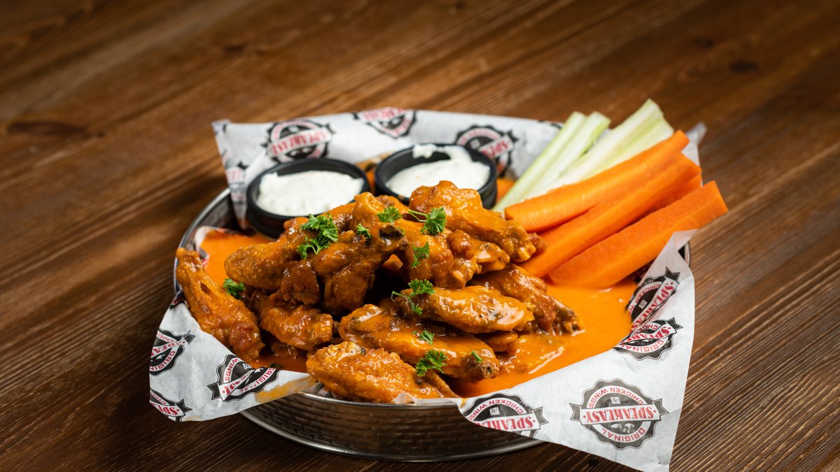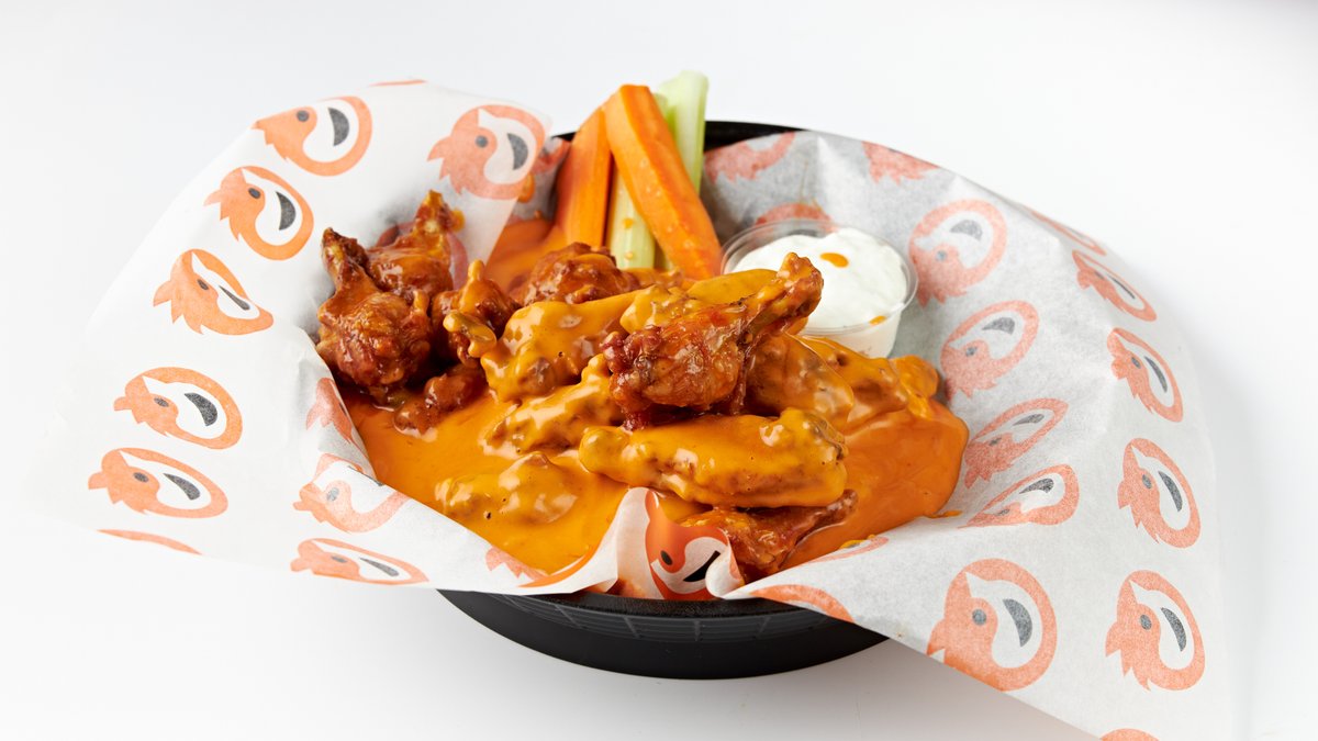 luuttomat siivet valitsemallasi kastikkeella porkanoiden,sellerin sekä aurajuustodipin kera.