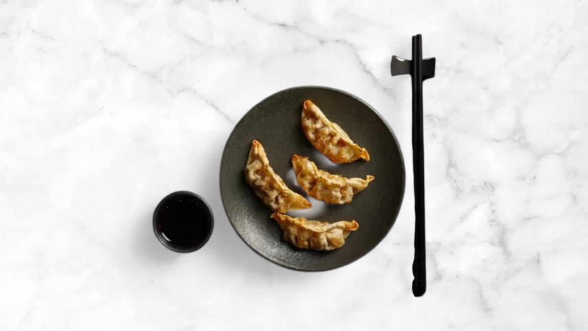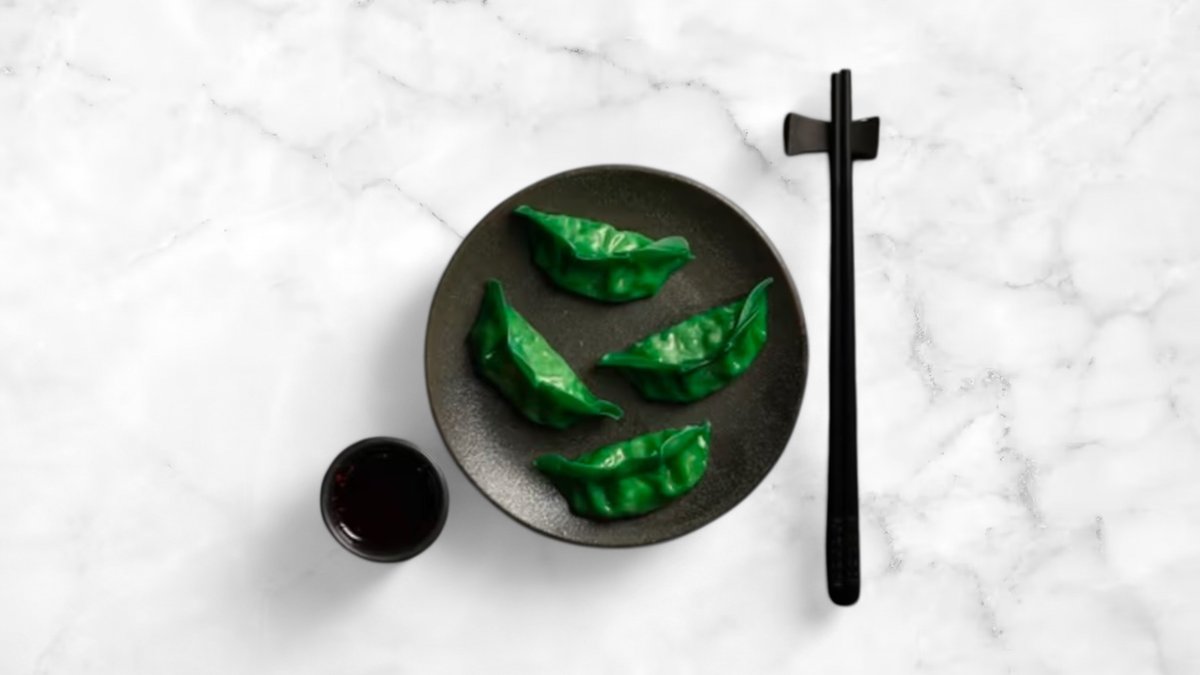 Vegaaninen tuorejuusto, kurkku, talon seitan, teriyakikastike, ruohosipuli, seesaminsiemenet.