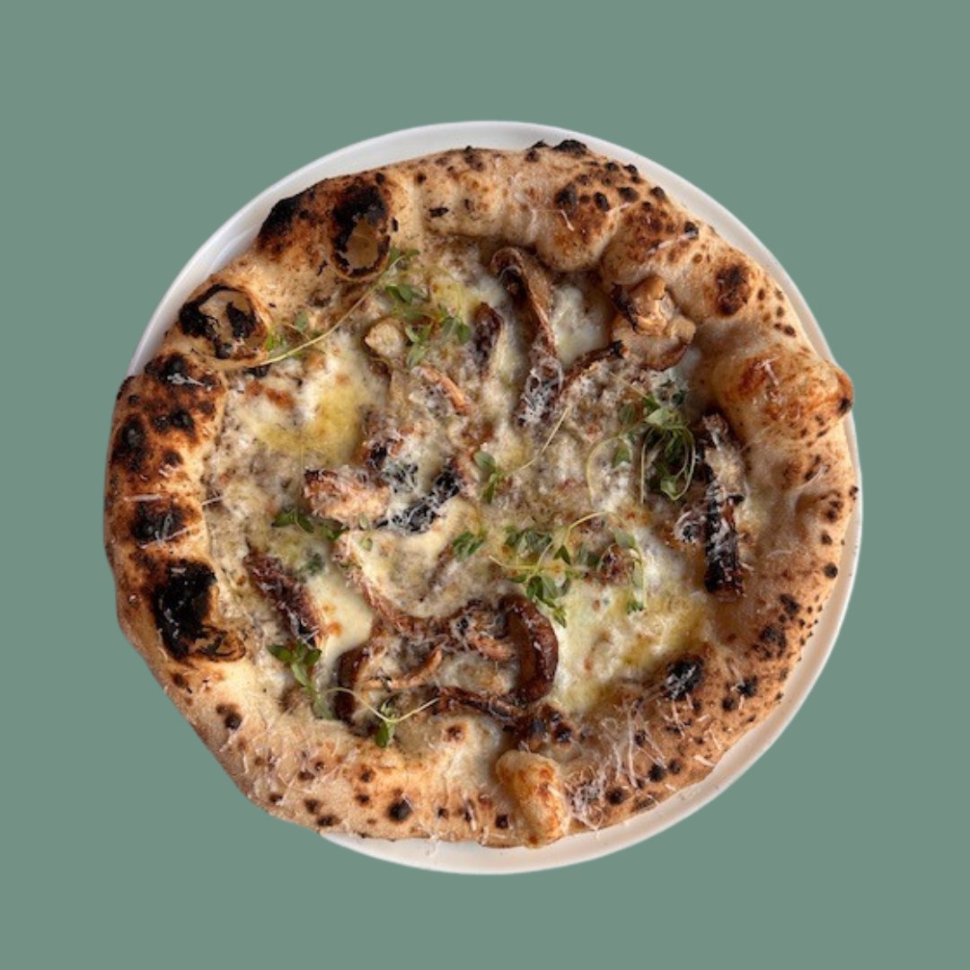 Truffle sour cream, fior di latte mozzarella, lemon and thyme marinated shitake mushrooms, oyster mushrooms, lemon evoo & parmesan