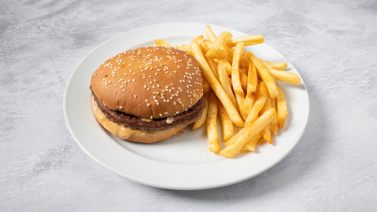 120g naudanlihapihvi, kananmuna, hampurilaiskastike