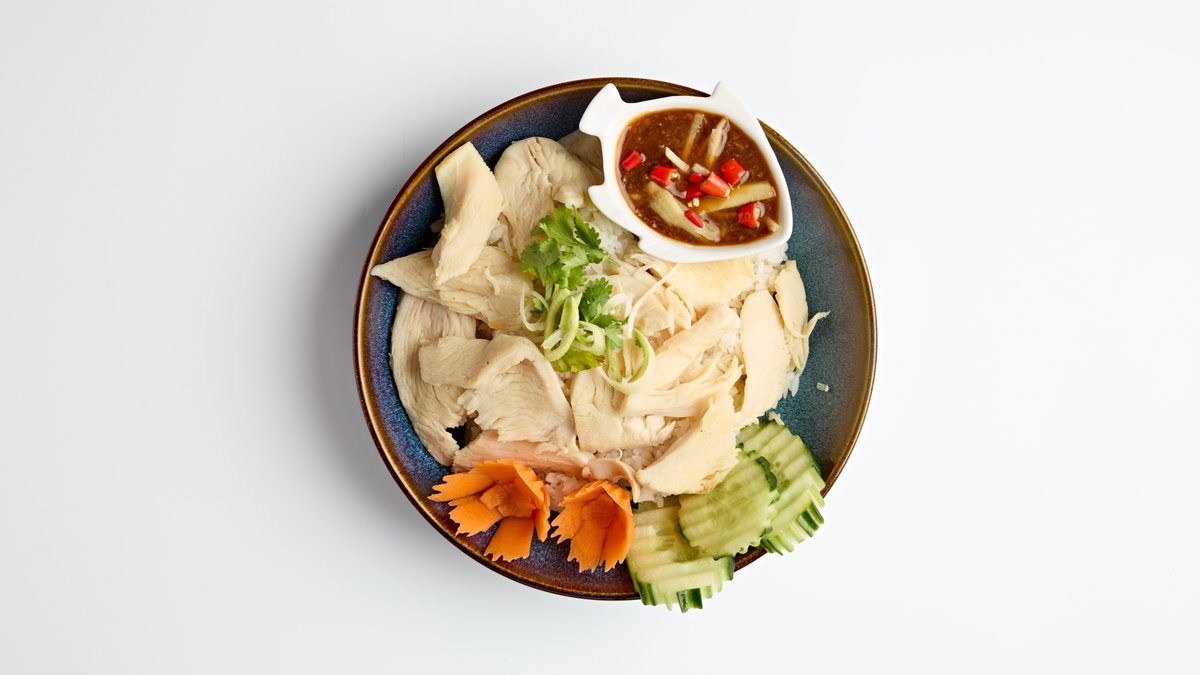 Yrttimarinoitua riisiä, höyrytettyä kanaa ja talon chilipapukastiketta