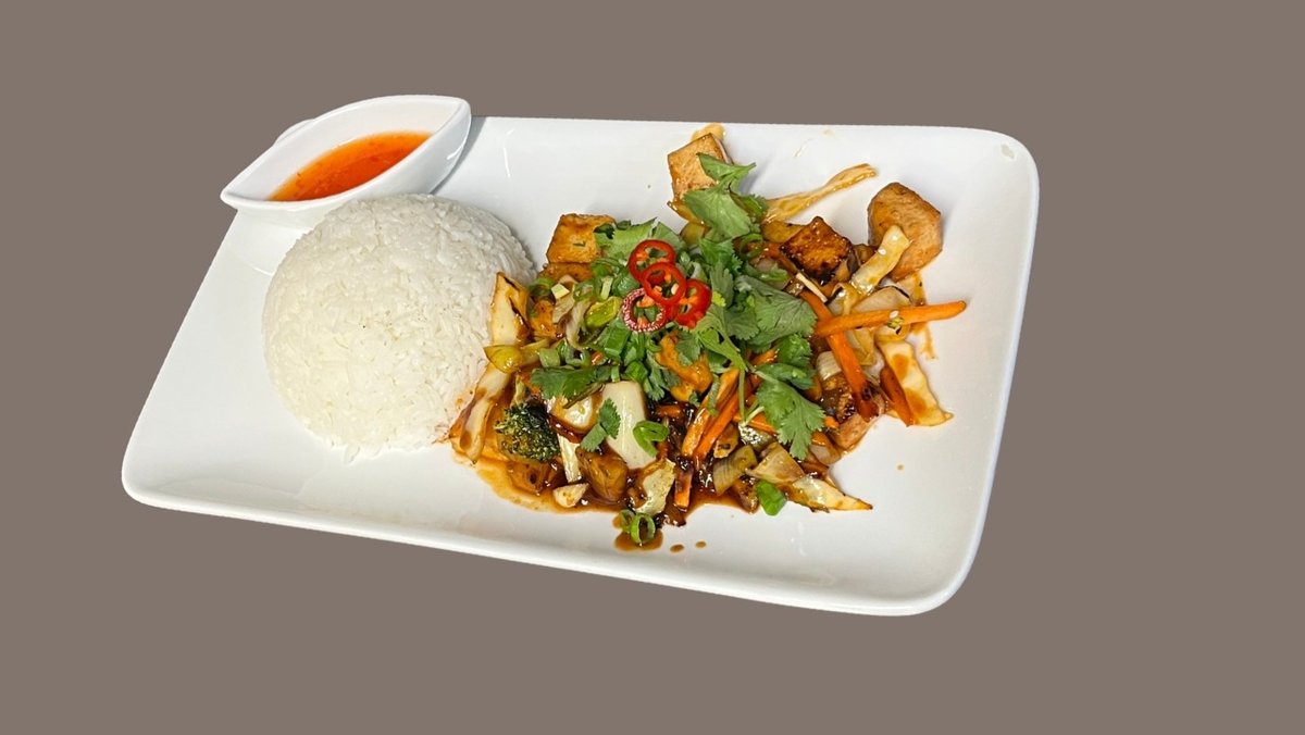 Paistettua kanaa, nautaa, tofua, possua tai katkarapuja hapanimeläkastikkeessa. Lisäksi porkkanaa, tomaattia, paprikaa ja sipulia. Tarjoillaan jasmiiniriisin kera. Haluamme varmistaa, että ruokailukokemuksesi on turvallinen ja miellyttävä! Tuotteemme voivat sisältää allergeenejä, joita ei ole erikseen mainittu kuvauksessa – esimerkiksi gluteenia, pähkinöitä, sipulia, lihavalmisteita, paprikaa, tomaattia tai muita vastaavia aineita. Jos sinulla on ruoka-aineallergioita tai yliherkkyyksiä, kerrothan niistä meille etukäteen, jotta voimme ottaa ne huomioon valmistuksessa. Huomaathan myös, että lähes kaikki annoksemme on mahdollista saada vegaanisena – kerro vain toiveestasi!Voit aina ottaa yhteyttä ravintolaamme ennen tilausta – autamme mielellämme numerossa 040 221 7552. Suosittelemme myös vierailemaan paikan päällä ravintolassamme, missä voit helposti keskustella tarjoilijamme kanssa ruoista, allergeeneista ja erikoisruokavalioista. Näin varmistamme yhdessä parhaan mahdollisen kokemuksen!