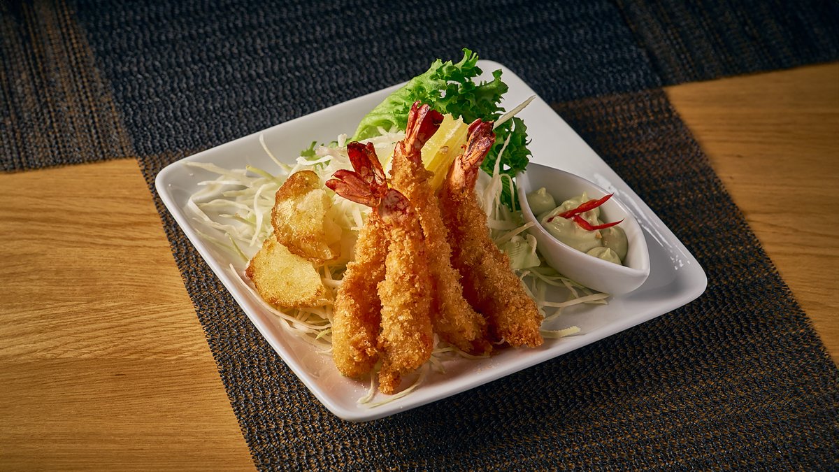 Japanilaisittain sitruunalla, inkiväärillä ja soijakastikkeella maustettuja jättikatkarapuja ja sipulia wasabimajoneesin kanssa. Tuote saattaa sisältää allergeenejä, joita ei ole mainittu tuotteen kuvauksessa, kuten pähkinää, sipulia, lihaa, paprikaa, tomaattia, tms. Asiakas on velvollinen ilmoittamaan jos hänellä on ruoka-aineallergioita, että ne voidaan ottaa huomioon. Myös yhteydenotto ravintolaan on aina mahdollista ennen tilausta, palvelemme numerossa 040 221 7552. Suosittelemme myös ruokailemista paikanpäällä ravintolassa, jolloin tarjoilijan kanssa on helppo keskustella ruokiin ja allergeeneihin.