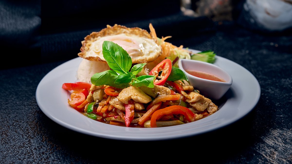 Valintasi mukaan paistettua kanaa, nautaa, possua, tofua tai katkarapuja chilillä ja basilikalla maustettuna. Lisäksi porkkanaa, bambua, paprikaa, valkosipulia ja friteerattu kananmuna. Tarjoillaan jasmiiniriisin kera. Haluamme varmistaa, että ruokailukokemuksesi on turvallinen ja miellyttävä! Tuotteemme voivat sisältää allergeenejä, joita ei ole erikseen mainittu kuvauksessa – esimerkiksi gluteenia, pähkinöitä, sipulia, lihavalmisteita, paprikaa, tomaattia tai muita vastaavia aineita. Jos sinulla on ruoka-aineallergioita tai yliherkkyyksiä, kerrothan niistä meille etukäteen, jotta voimme ottaa ne huomioon valmistuksessa. Huomaathan myös, että lähes kaikki annoksemme on mahdollista saada vegaanisena – kerro vain toiveestasi!Voit aina ottaa yhteyttä ravintolaamme ennen tilausta – autamme mielellämme numerossa 040 221 7552. Suosittelemme myös vierailemaan paikan päällä ravintolassamme, missä voit helposti keskustella tarjoilijamme kanssa ruoista, allergeeneista ja erikoisruokavalioista. Näin varmistamme yhdessä parhaan mahdollisen kokemuksen!