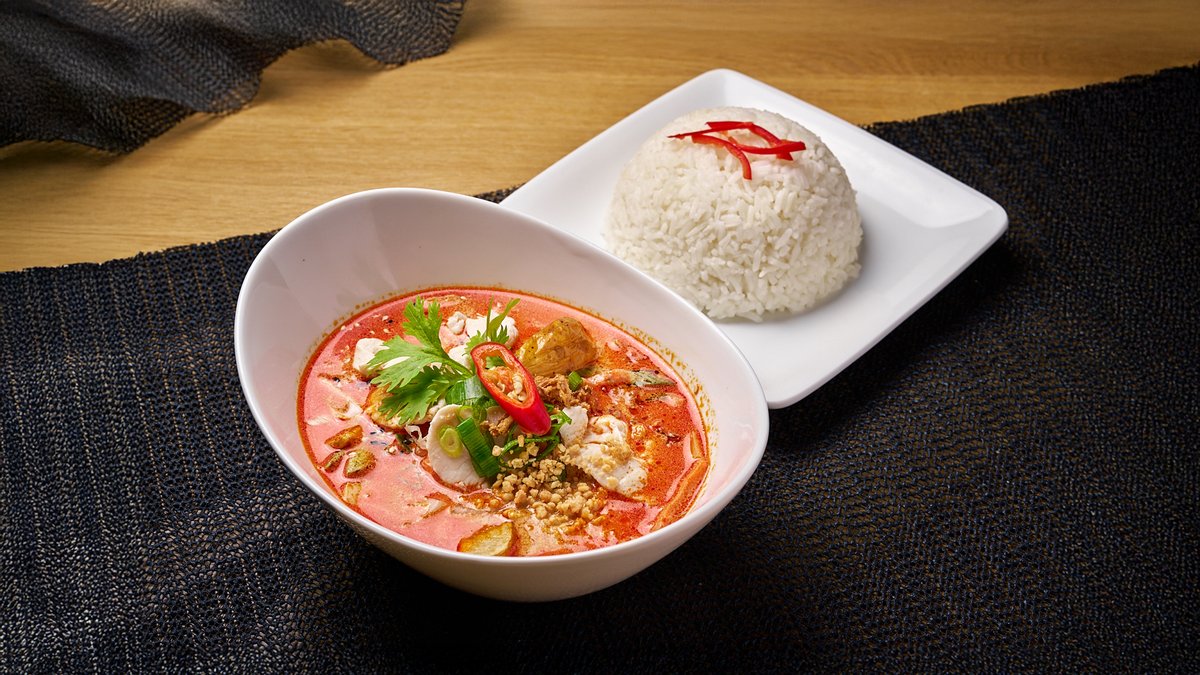 Vihanneksia, perunaa ja tuoreita yrttejä kookosliemessä. Valitse curryyn kana, nauta, possu, katkarapu, tai tofu. Tarjoillaan jasmiiniriisin kera. Haluamme varmistaa, että ruokailukokemuksesi on turvallinen ja miellyttävä! Tuotteemme voivat sisältää allergeenejä, joita ei ole erikseen mainittu kuvauksessa – esimerkiksi gluteenia, pähkinöitä, sipulia, lihavalmisteita, paprikaa, tomaattia tai muita vastaavia aineita. Jos sinulla on ruoka-aineallergioita tai yliherkkyyksiä, kerrothan niistä meille etukäteen, jotta voimme ottaa ne huomioon valmistuksessa. Huomaathan myös, että lähes kaikki annoksemme on mahdollista saada vegaanisena – kerro vain toiveestasi!Voit aina ottaa yhteyttä ravintolaamme ennen tilausta – autamme mielellämme numerossa 040 221 7552. Suosittelemme myös vierailemaan paikan päällä ravintolassamme, missä voit helposti keskustella tarjoilijamme kanssa ruoista, allergeeneista ja erikoisruokavalioista. Näin varmistamme yhdessä parhaan mahdollisen kokemuksen!