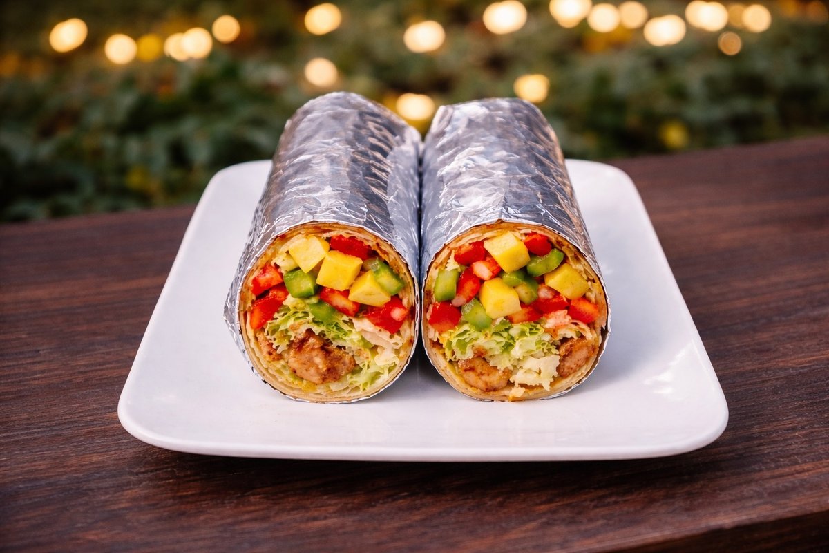 Pariloitu kananrintafilee, jäävuorisalaatti, kurkku, tomaatti, paprika, ananas, currykastike, leipää
