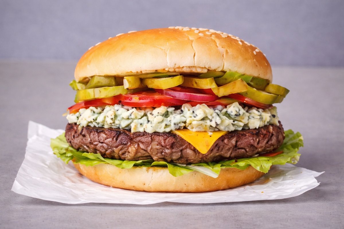 1x125 g pihvi, salaatti, tomaatti, kurkku, juusto
