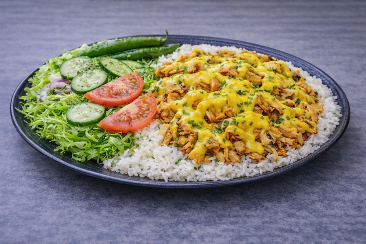 Kana, salaatti, currykastike