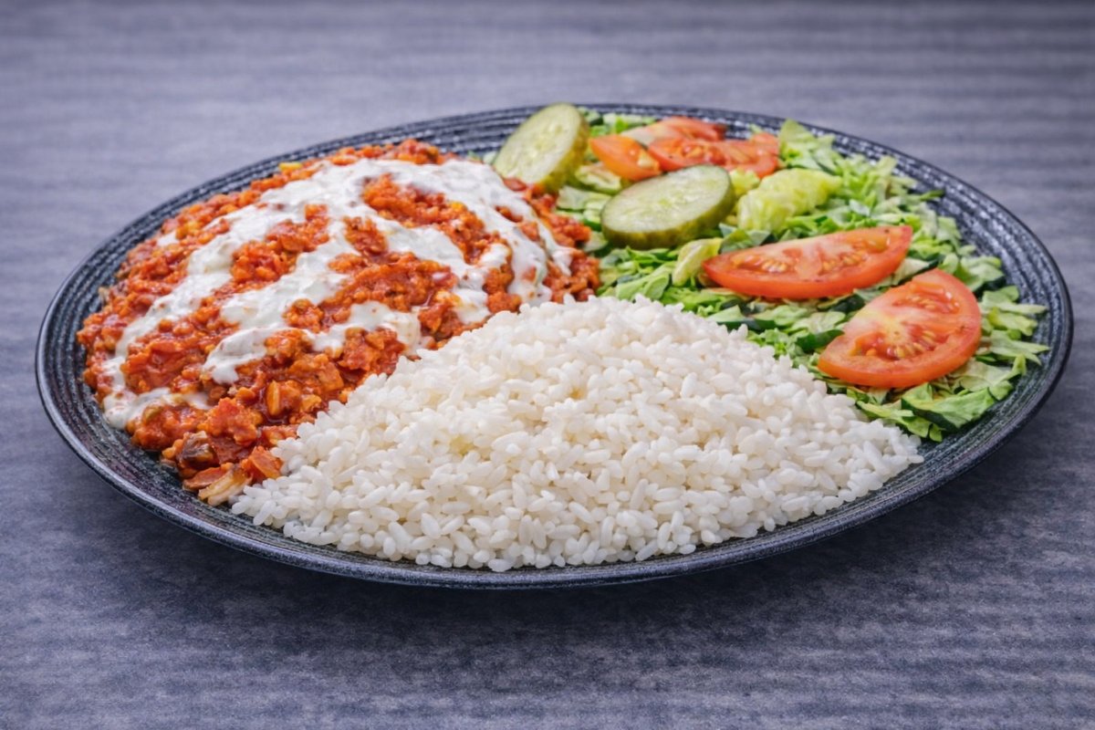 Kebabliha, salaatti, kastike