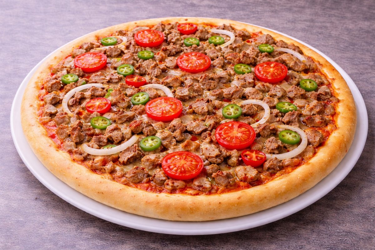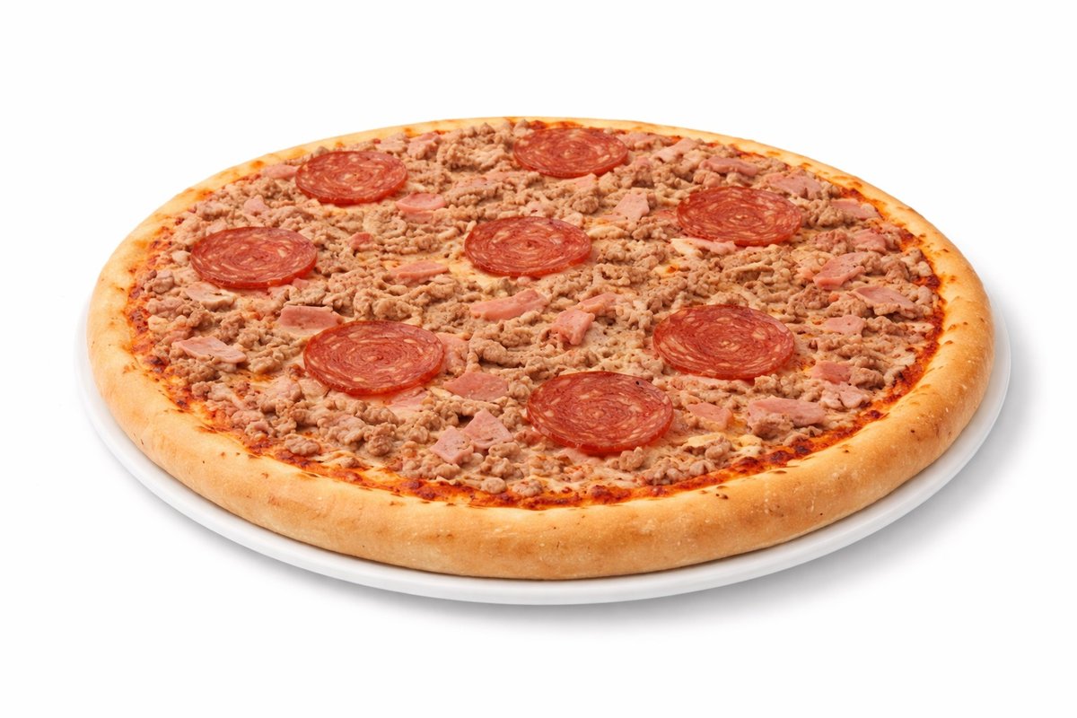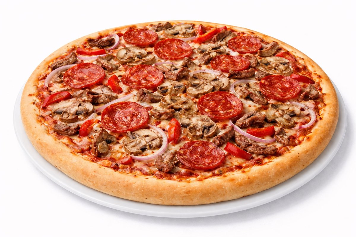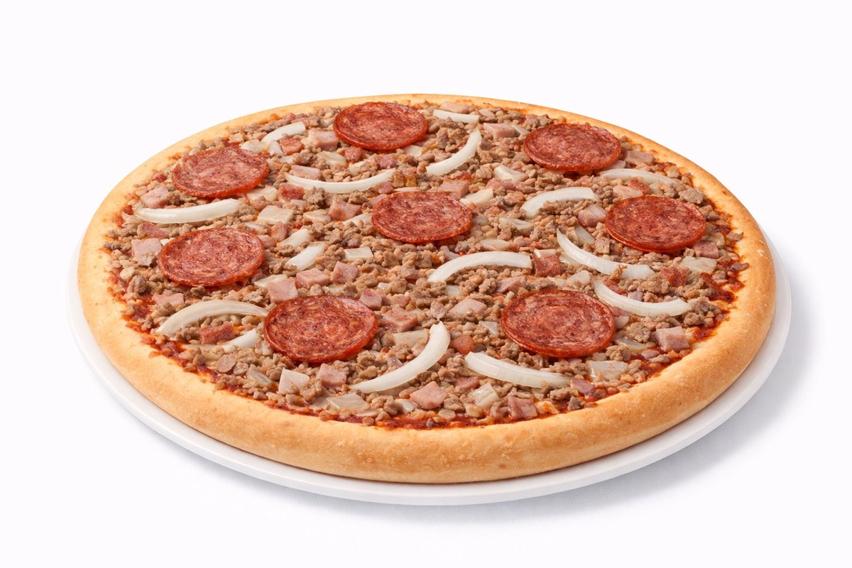 Kinkku, herkkukurkku, sipuli, pepperonimakkara, naudanliha, valkosipuli