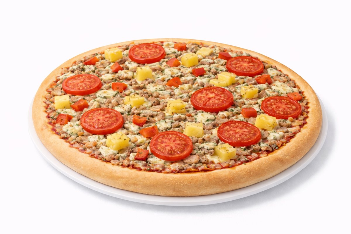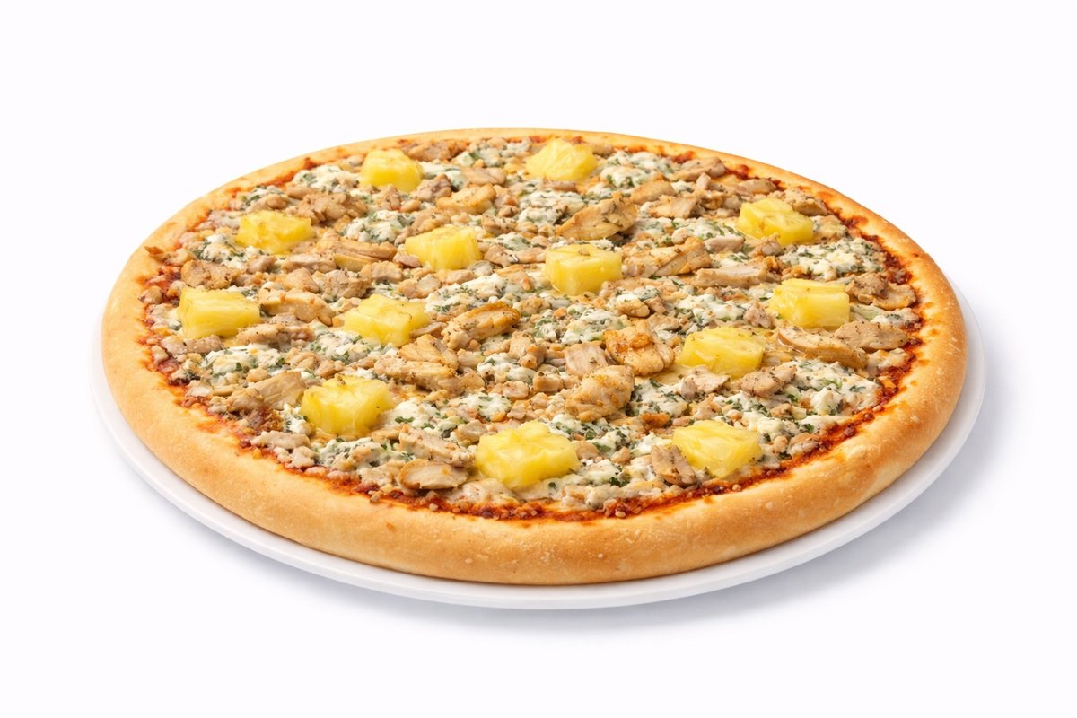 Kana, ananas, paprika, tomaatti, aurajuusto