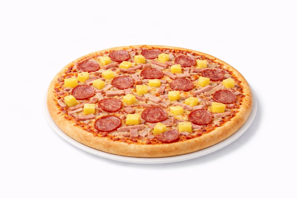 Ananas, pepperonimakkara, tomaatti, aurajuusto, mozzarellajuusto