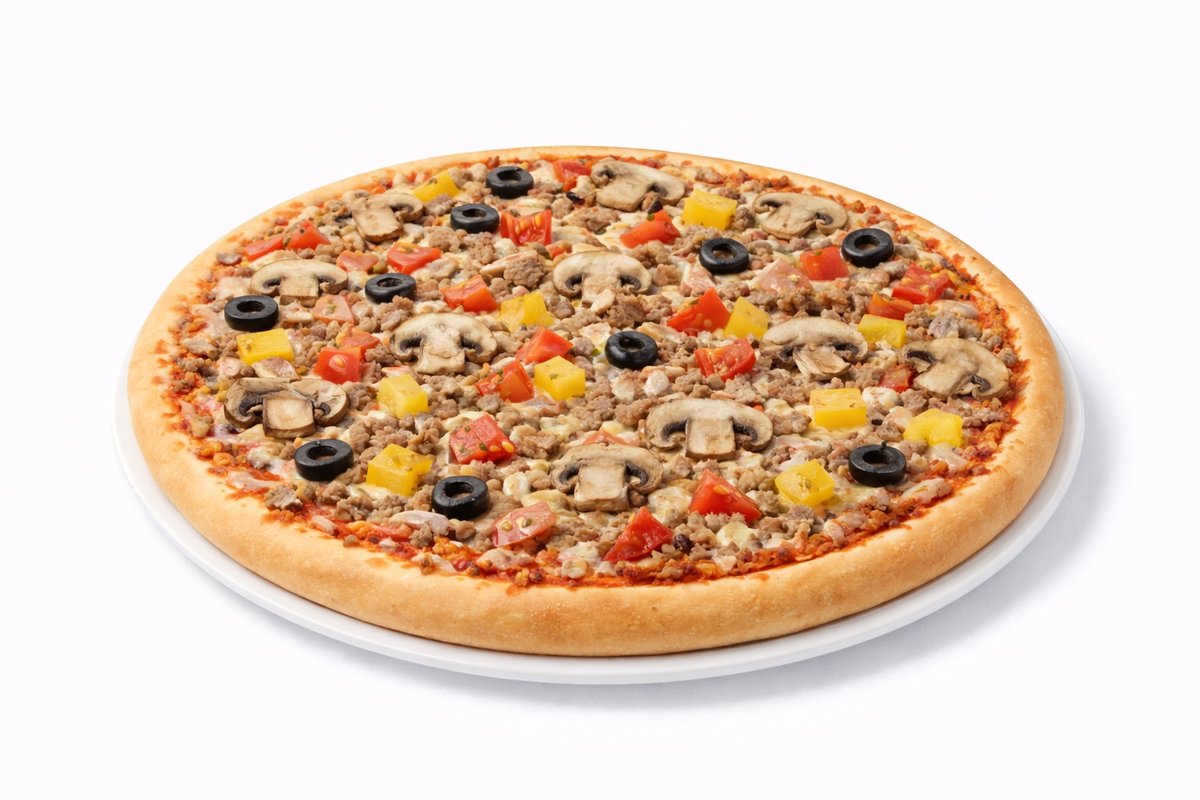 Herkkusieni, paprika, oliivi, tomaatti, sipuli