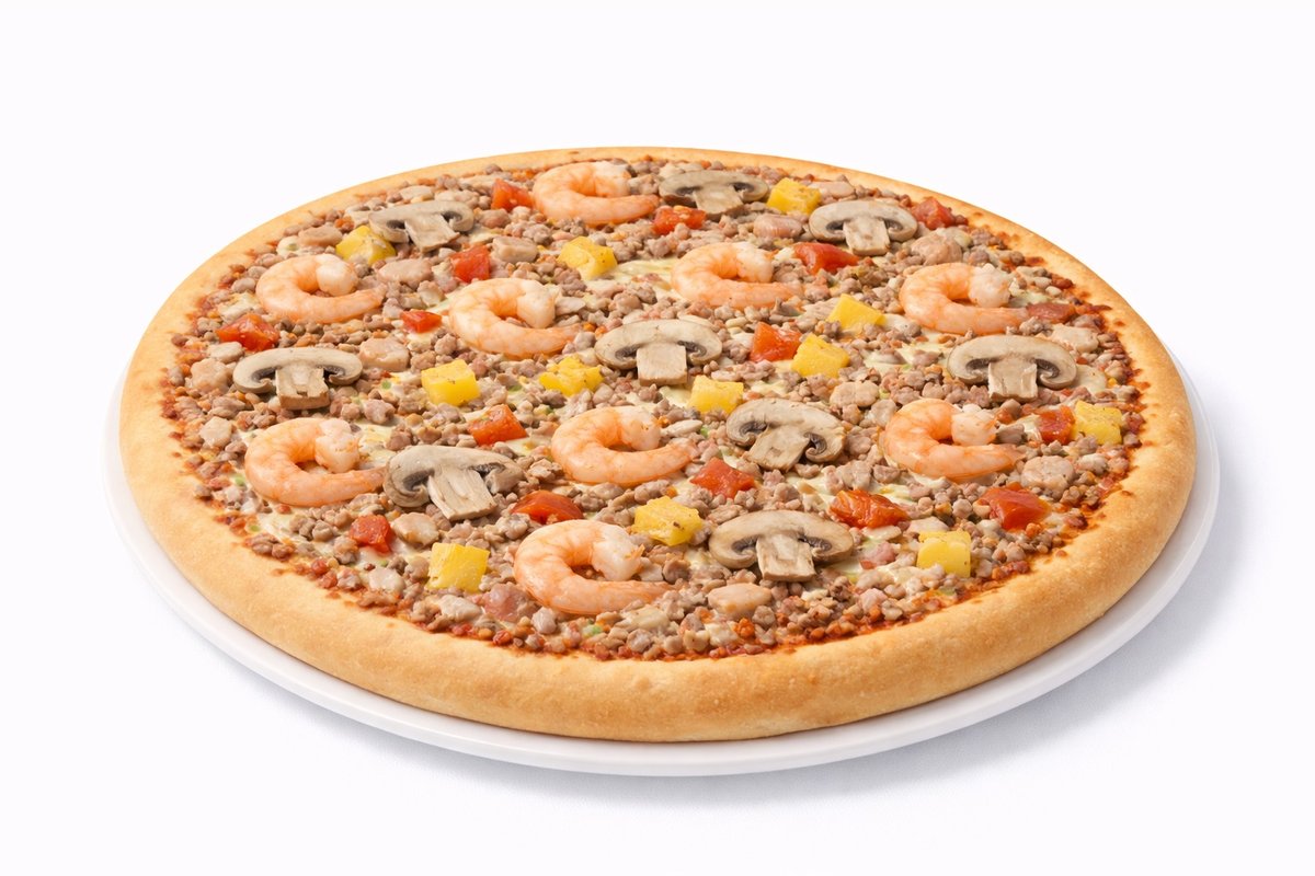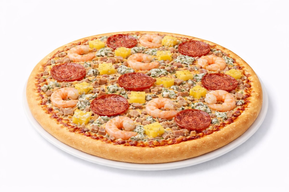 Salami, ananas, katkarapu, aurajuusto