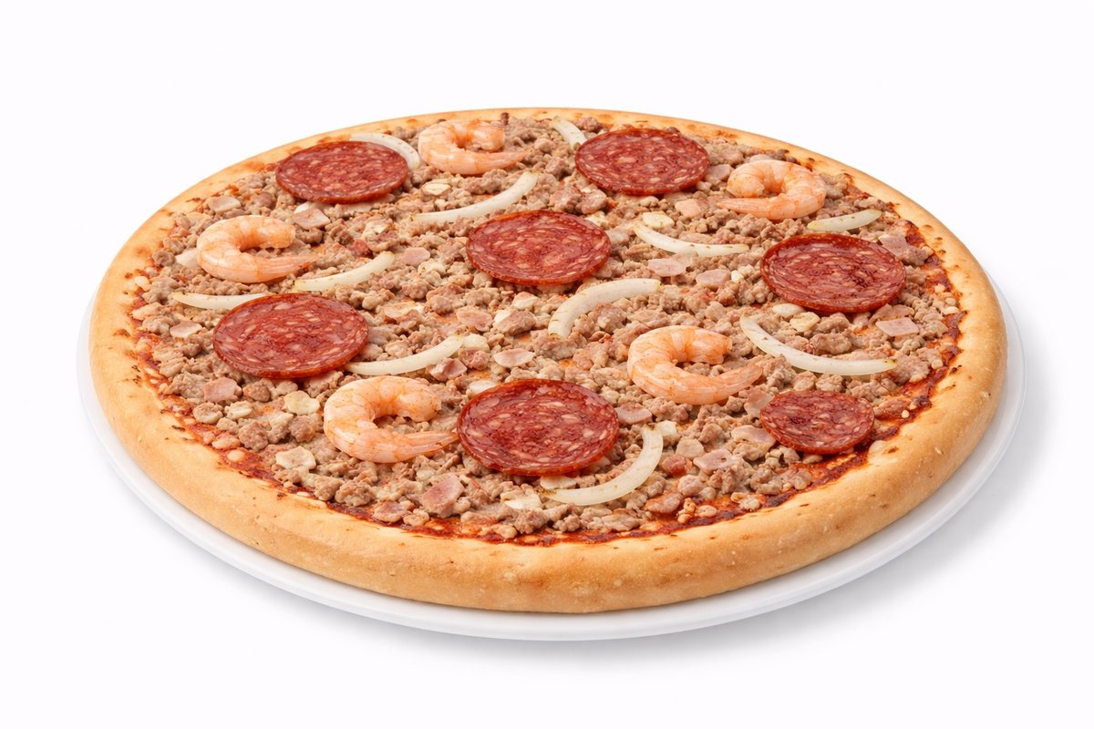 Kinkku, salami, katkarapu, sipuli, mustapippuri, valkosipuli