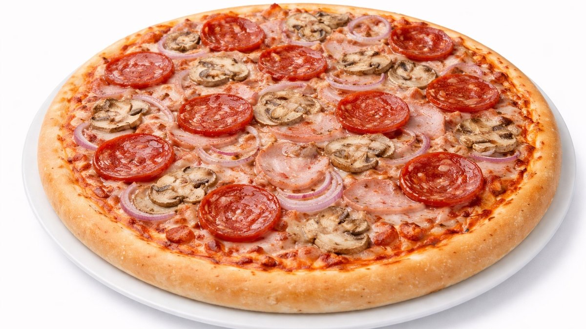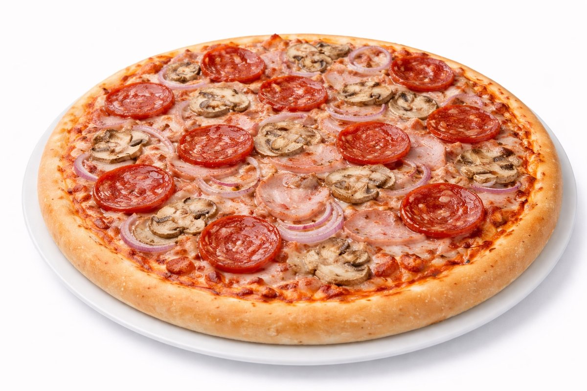Kinkku, pepperonimakkara, herkkusieni, sipuli