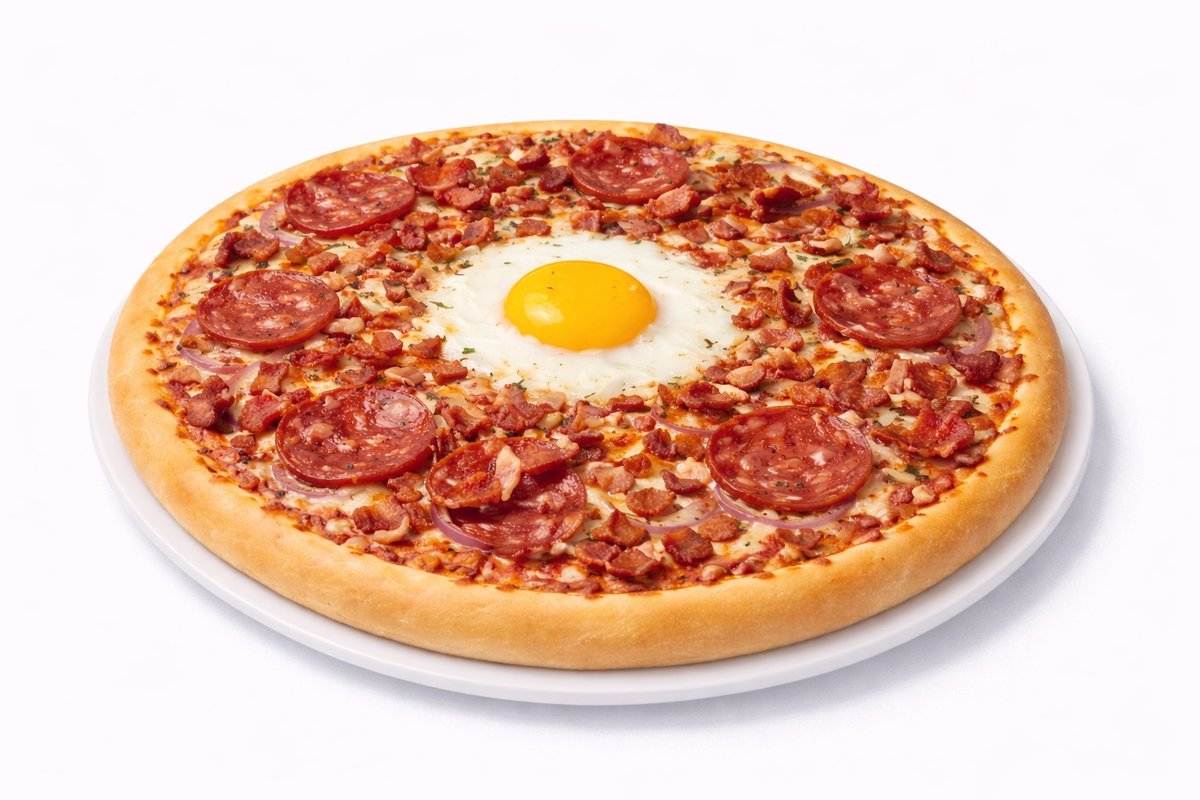 Salami, sipuli, kananmuna, pekoni, aurajuusto