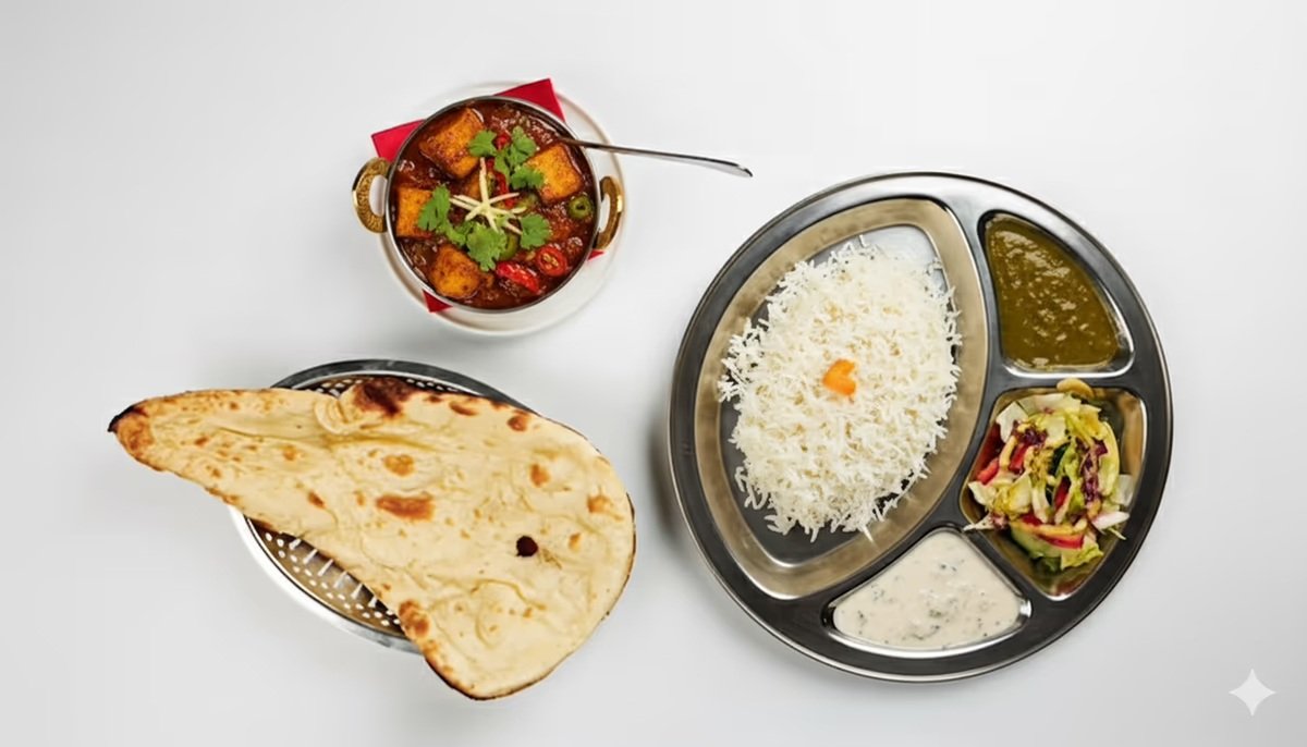 Annokset sisältävät riisin, naan, sekä raidan.