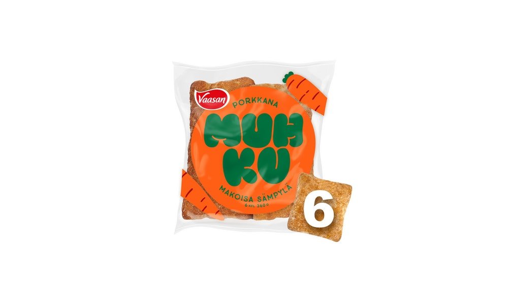 Vaasan Muhku porkkana-vehnäsämpylä 6kpl/360g