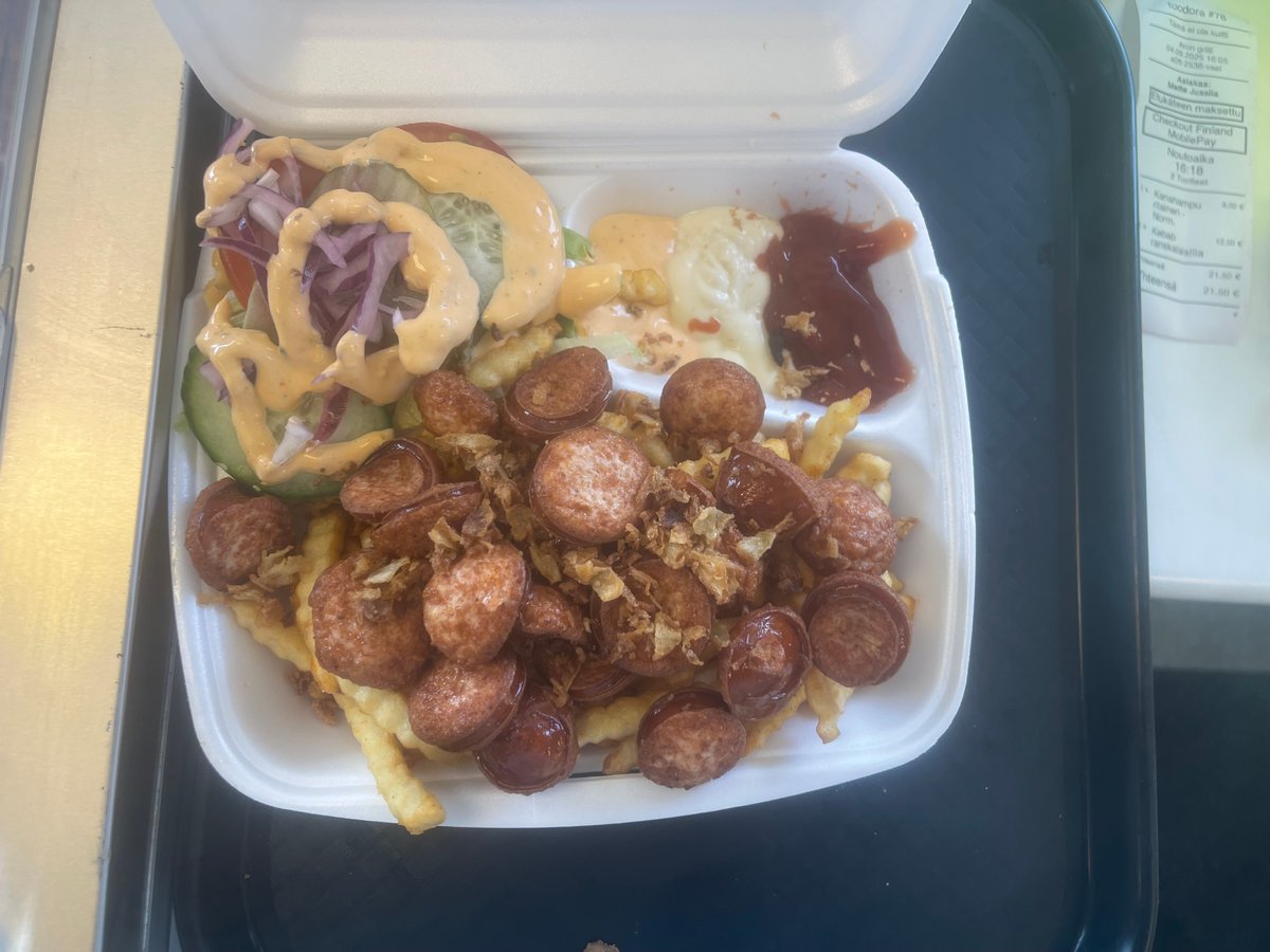 Kaikkiin annoksiin sisältyy: salaatti, tomaatti, kurkku, majoneesi, ketsuppi , salaattikastike