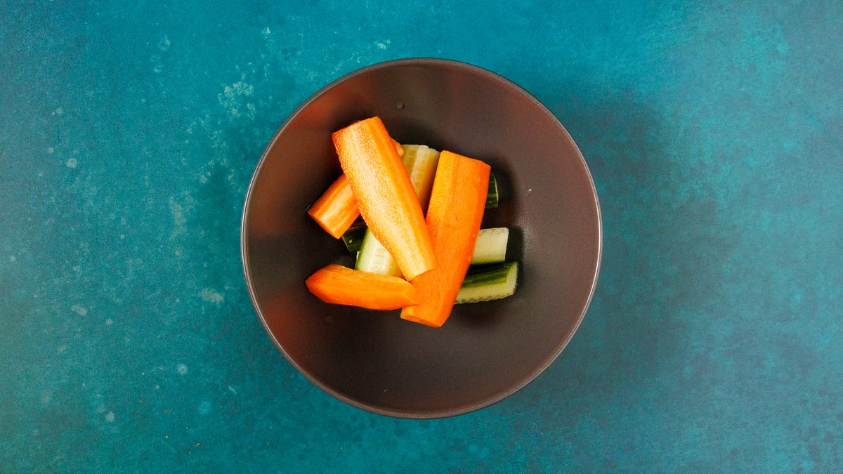 Salaatti, kurkku, paprika, purjo, lohi, kurkkusalaatti kermaviilikastike, sitruunaviipaleet, persilja.