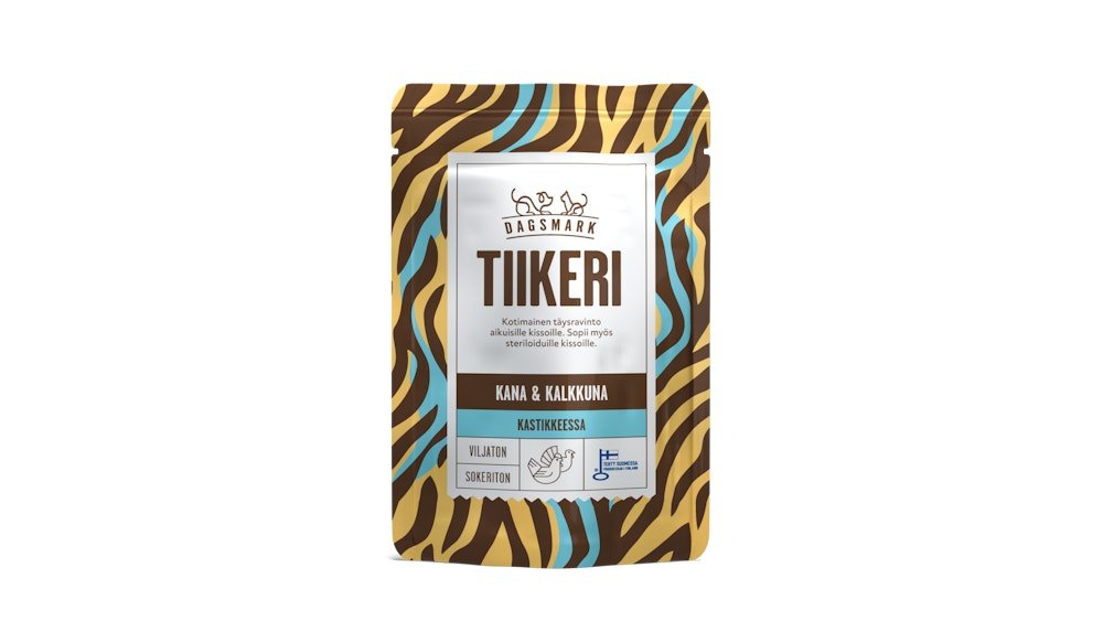Dagsmark TIIKERI kotimainen kissan täysravinto 8x80g kanaa ja kalkkunaa kastikkeessa