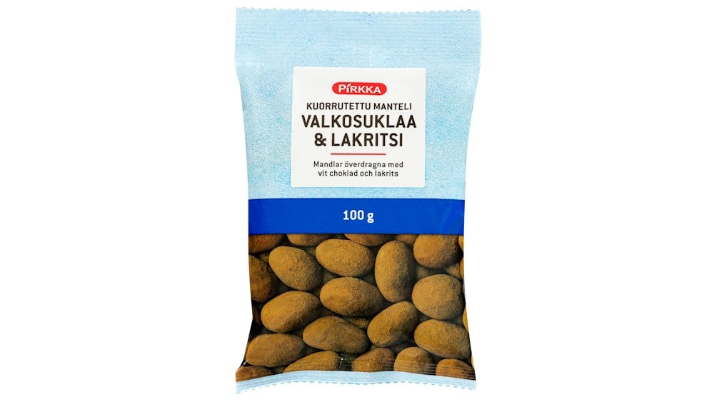 Pirkka kuorrutettu manteli 100g lakritsi valkosuklaa