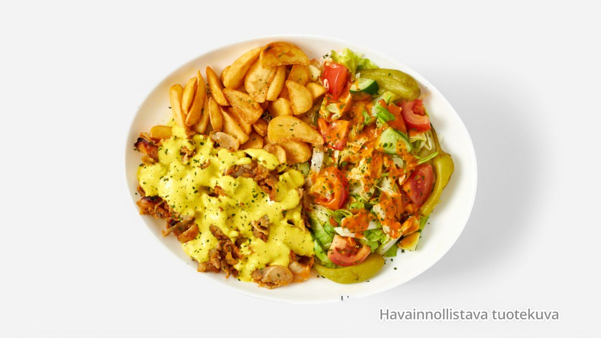 runsaasti kebablihaa ja kanakebab valitse mieluinen kastike kebabille : TULINEN KEBABKASTIKE JA JALAPENO TAI MIETO KEBABKASTIKE JA PEPPERONI PAPRIKA TAI LAKTOOSITON JOGURTTIKASTIKE JA PEPPERONI PAPRIKA . HUOM. KEBABLIHA JÄÄHTYY NOPEAMMIN