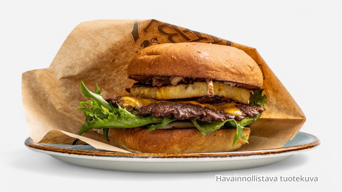 Isot ranskalaiset, kokolihapihvi, broilerinleike, ananas, aura, majoneesi