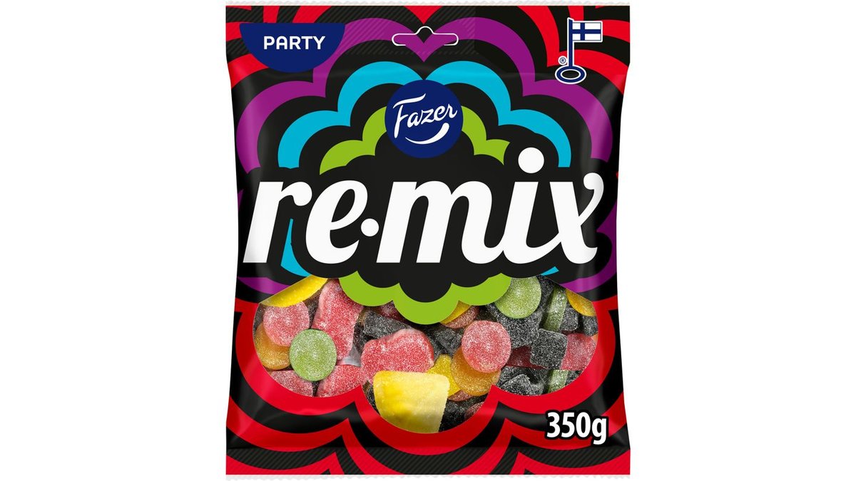 30 vuotta parhaita karkkisekoituksia! Alkuperäinen Remix-karkkipussi on runsas sekoitus täynnä salmiakkia, hedelmäkarkkeja ja kirpeitä suosikkeja. Keväällä 2026 Remix juhlii 30-vuotissynttäreitään herkullisella aarrejahdilla! Osaan Remix 30 v. -logolla varustetuista pusseista on piilotettu tuttujen karkkien joukkoon keltaisia Remix 30 -karkkeja, jotka toimivat arpalipukkeiden tapaan suuressa synttäriarvonnassa. Löydä karkki pussista, lataa kuva siitä kampanjasivulle fazer.fi/remix30 ja katso, voititko jonkin sadoista palkinnoista! Kampanja-aika on 27.12.2025-28.6.2026 ja siihen voivat osallistua vain yli 18-vuotiaat.