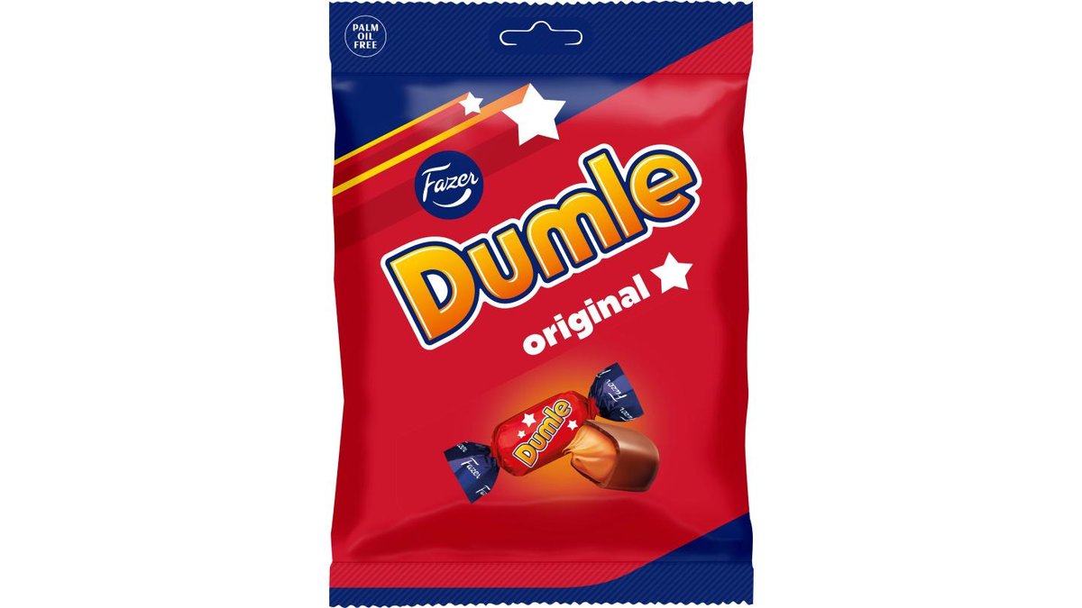 Dumle on rakastettu klassikko, joka on yhdistänyt meitä sukupolvien ajan. Sen ainutlaatuinen makuyhdistelmä pehmeää toffeekaramellia ja samettista suklaata tarjoavat vastustamattoman makuelämyksen! Jaa ilo ystävien ja perheen kanssa! Palmuöljytön. Noudatamme kaakaonhankinnassamme Fazerin kaakaovisiota. Lue lisää www.fazercocoavision.com. Let´s stick together!